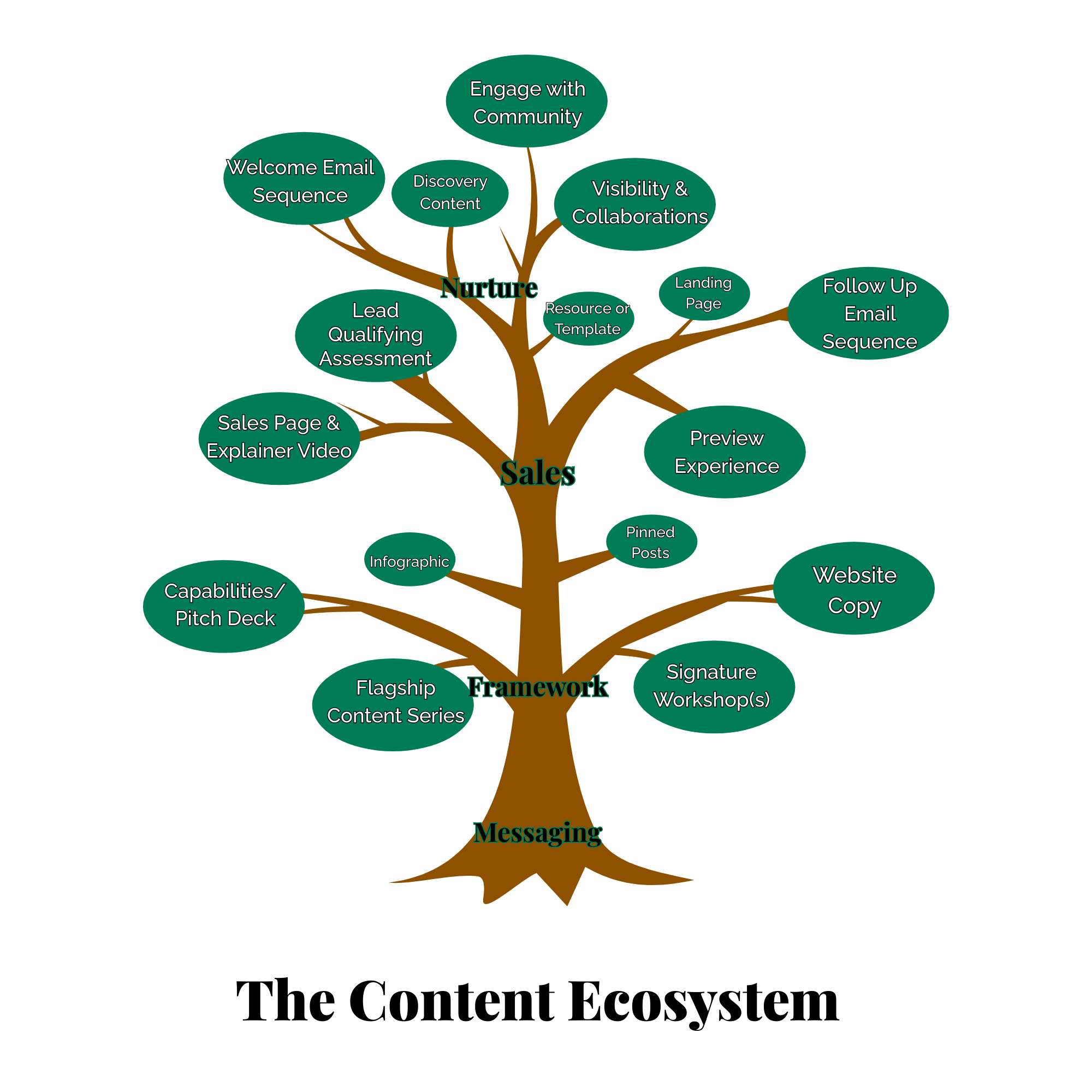 Messaging forms the roots of our content, which takes the heavy lifting off of you. As you define our framework, you can use that to work backwards from sales to discovery & nurture touchpoints.