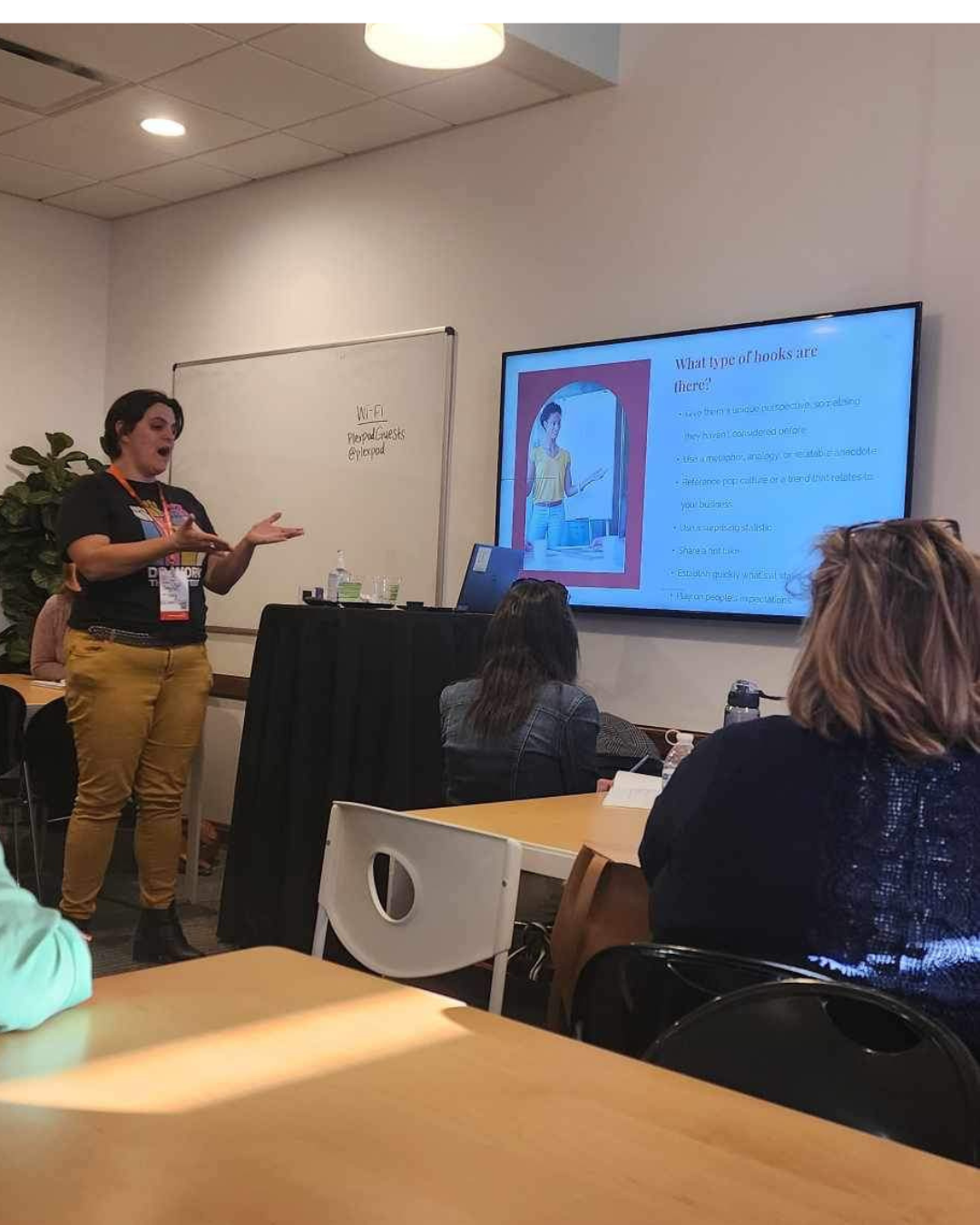 My favorite topic is helping attendees identify what makes their business or creative work distinctive, and the words they can use to express that to the people they’re trying to reach. I use value proposition design, brand identity, and positioning to help folks walk away with clear messaging that they can use right away.