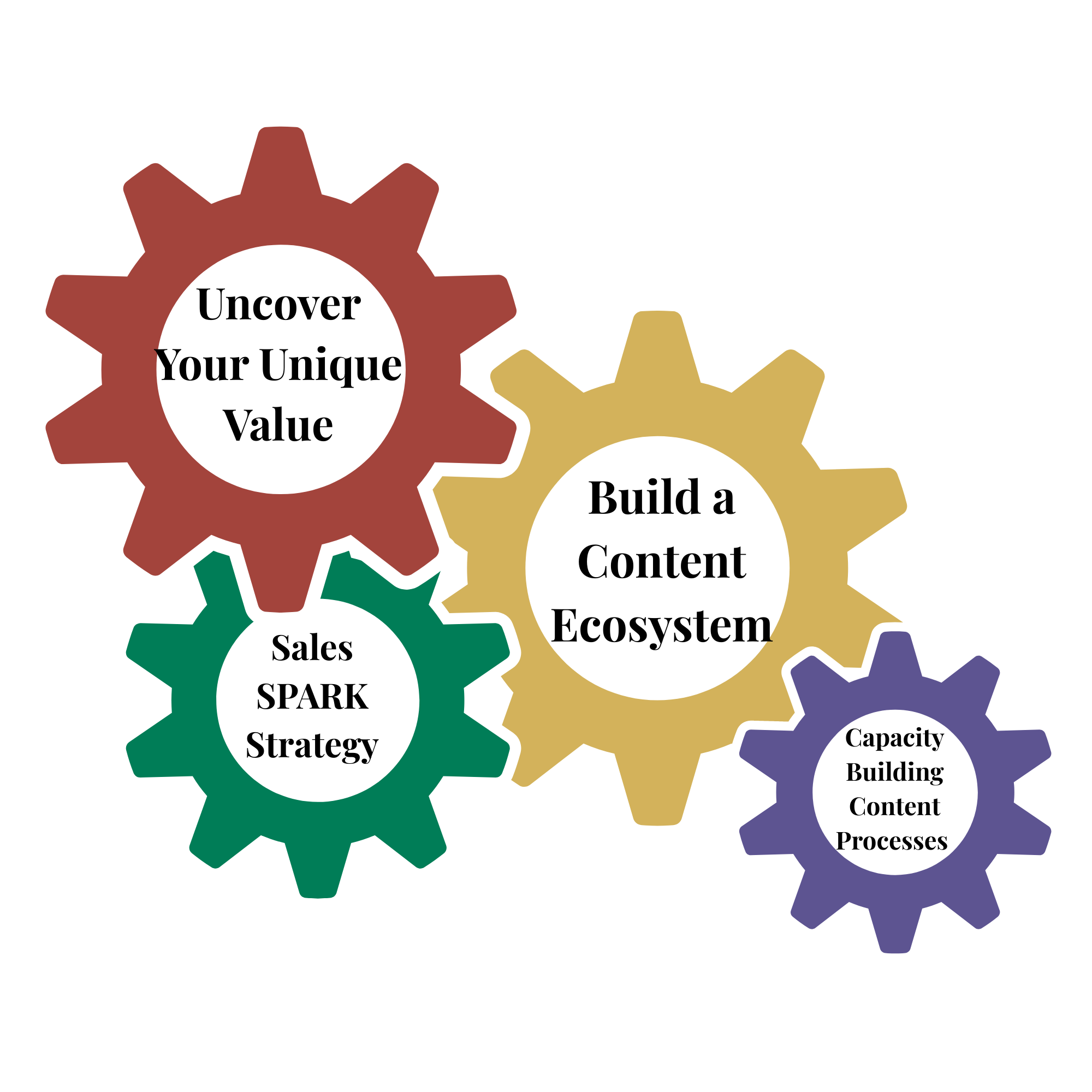 In 12 weeks, we go through each of the aspects of your core marketing and sales processes: your unique differentiators, customer journey, sales, and content creation.